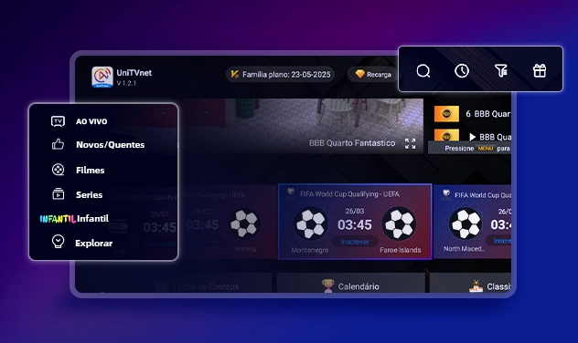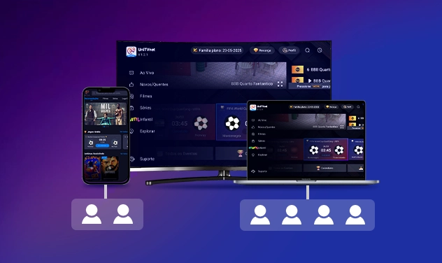 Oferece uma interface simples e intuitiva, permitindo que os usuários naveguem com facilidade e alternem entre canais e conteúdos sem complicação. Seja na TV, no PC ou em dispositivo MOB, a experiência de uso permanece fluida e amigável.